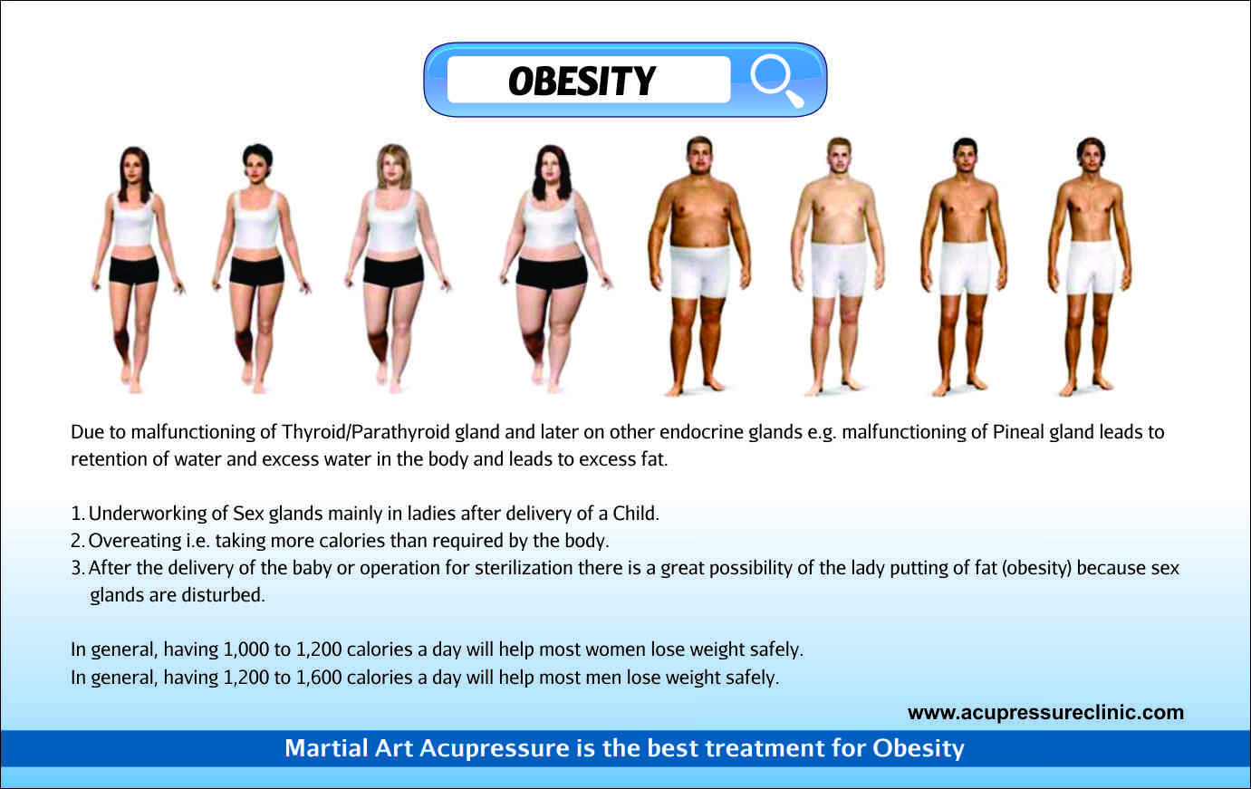 Acupressure treatment on all endocrine glands will help to reduce weight.